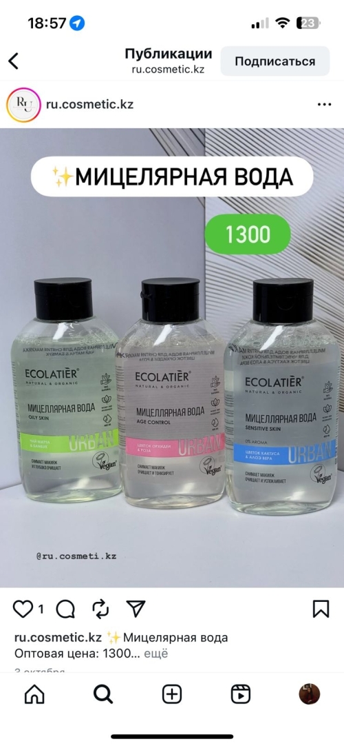 ECOLATIER мицеллярная вода